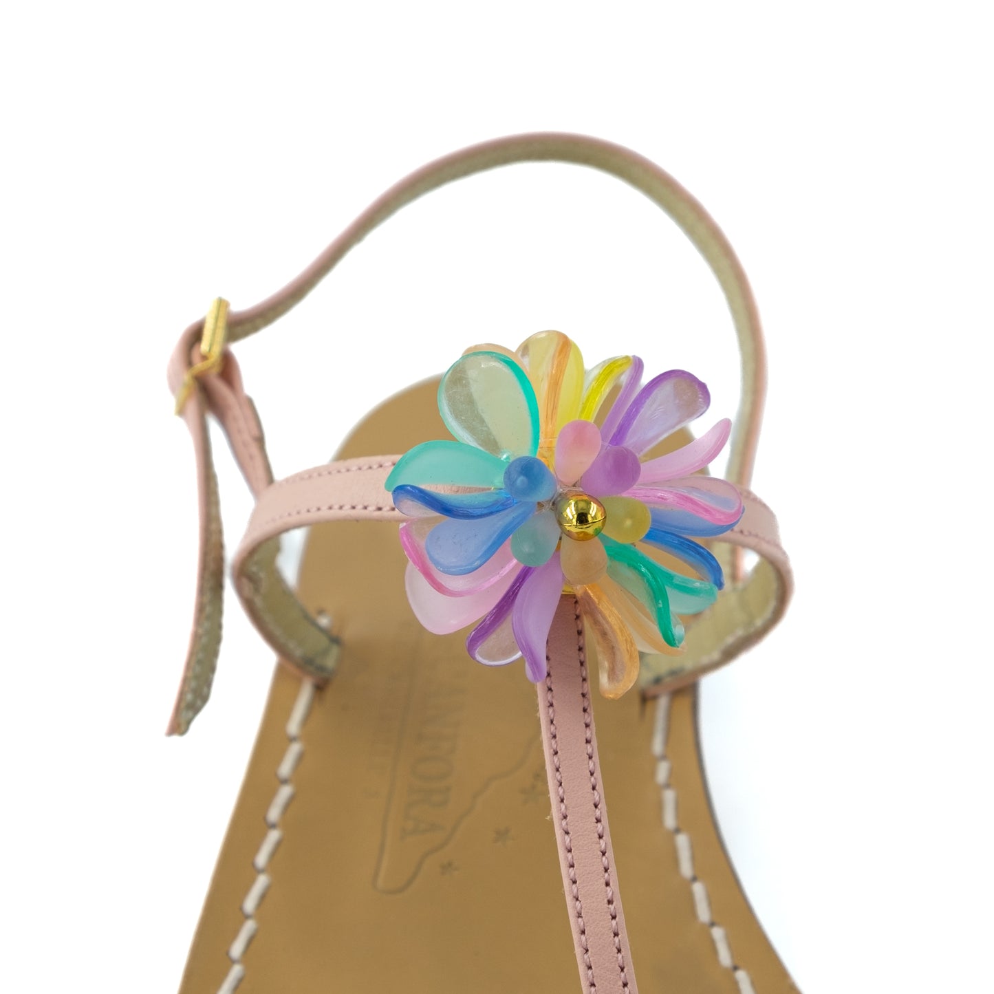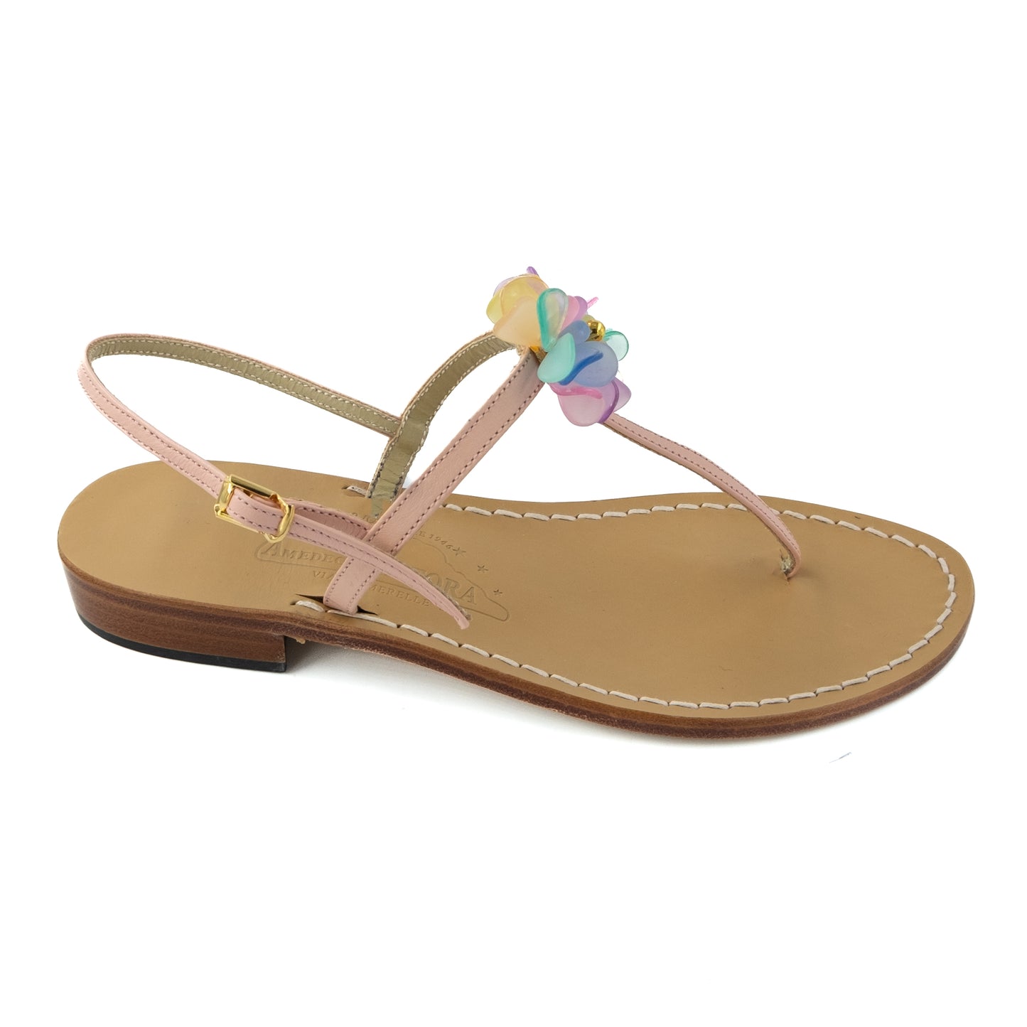 Genuine leather thong sandal with watch strap and flower.