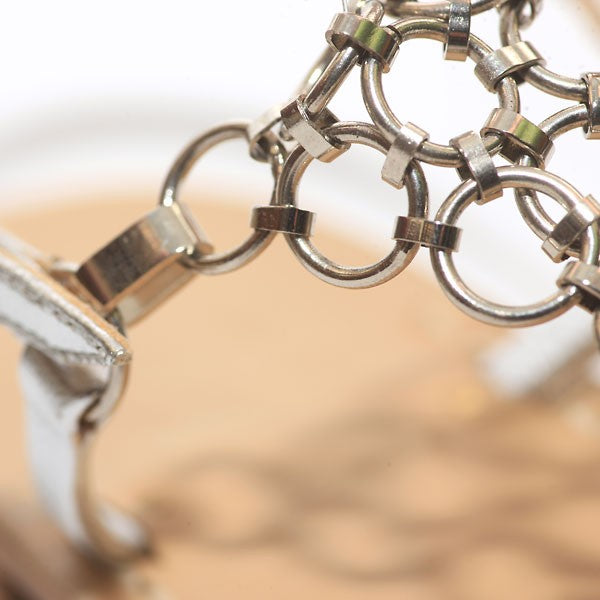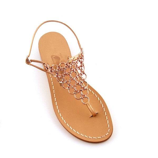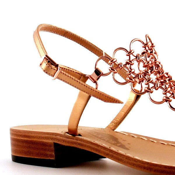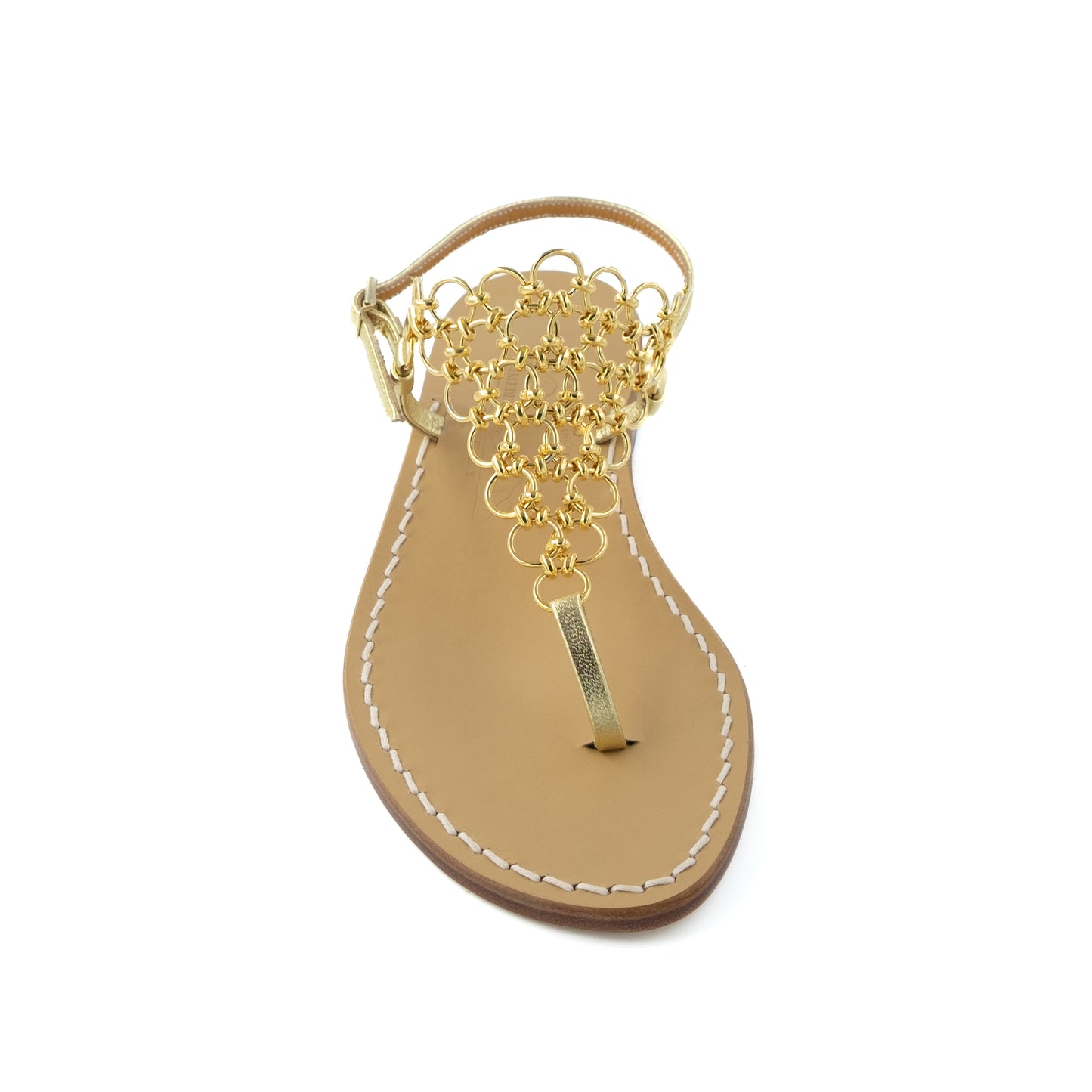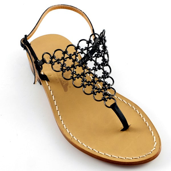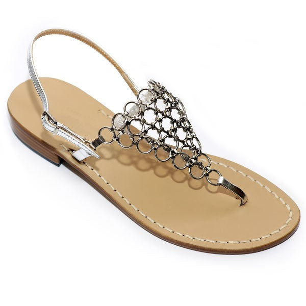 Jackie Kennedy’s favorite: thong sandals with silver straps and triangle of interlacing metal rings.